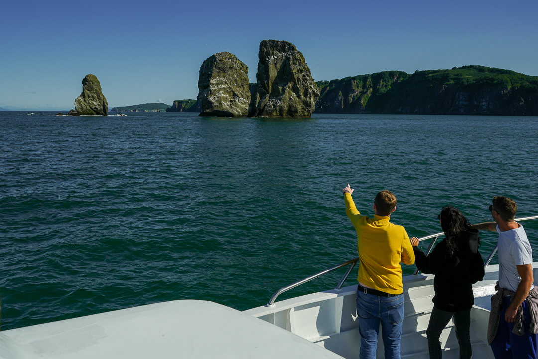 Мы выйдем из Авачинской бухты мимо живописных скал, в том числе знаменитых «Трёх братьев». Если повезет, то по пути увидим касаток и горбатых китов.