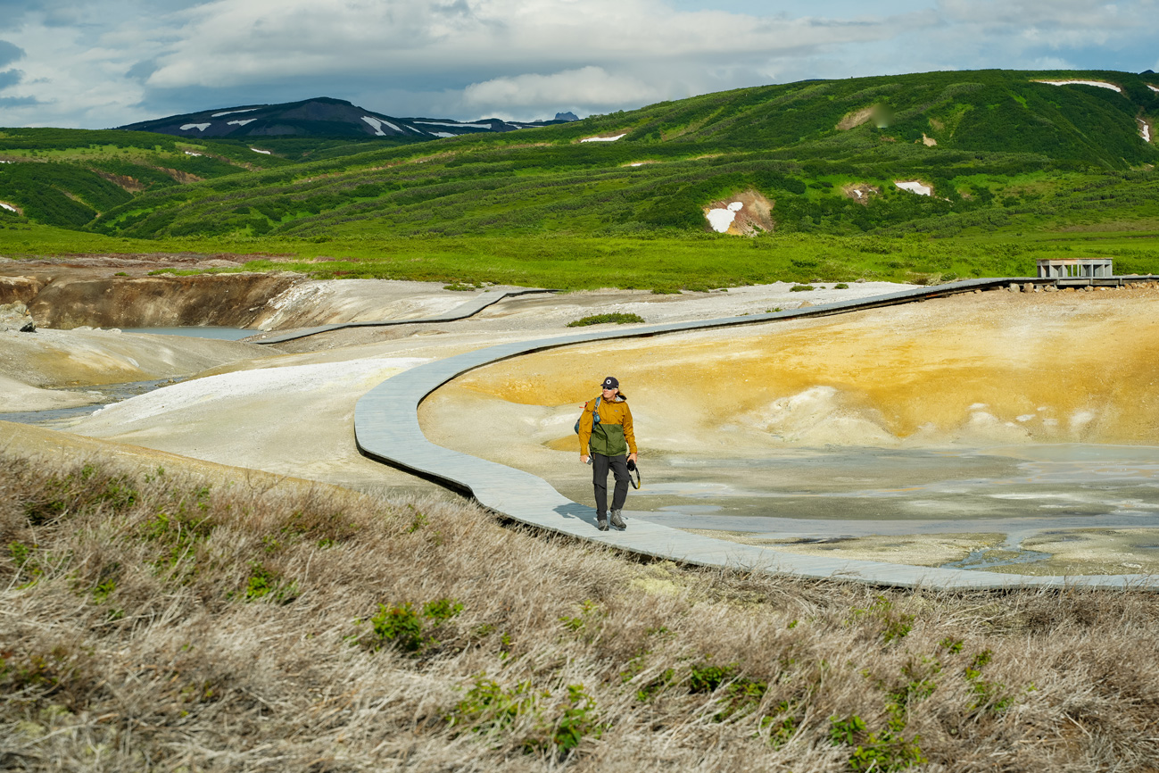 Далее отправляемся в кальдеру вулкана Узон. Впадина образовалась в результате вулканической деятельности около 40 000 лет назад. Вам откроется тайная жизнь Земли с термальными полями, серными озерами и пляжами, горячими источниками с колониями теплолюбивых водорослей.